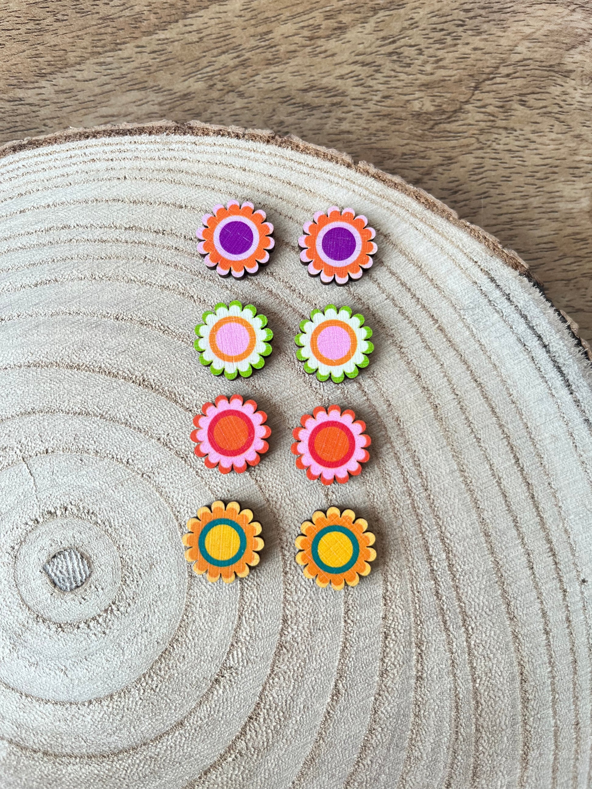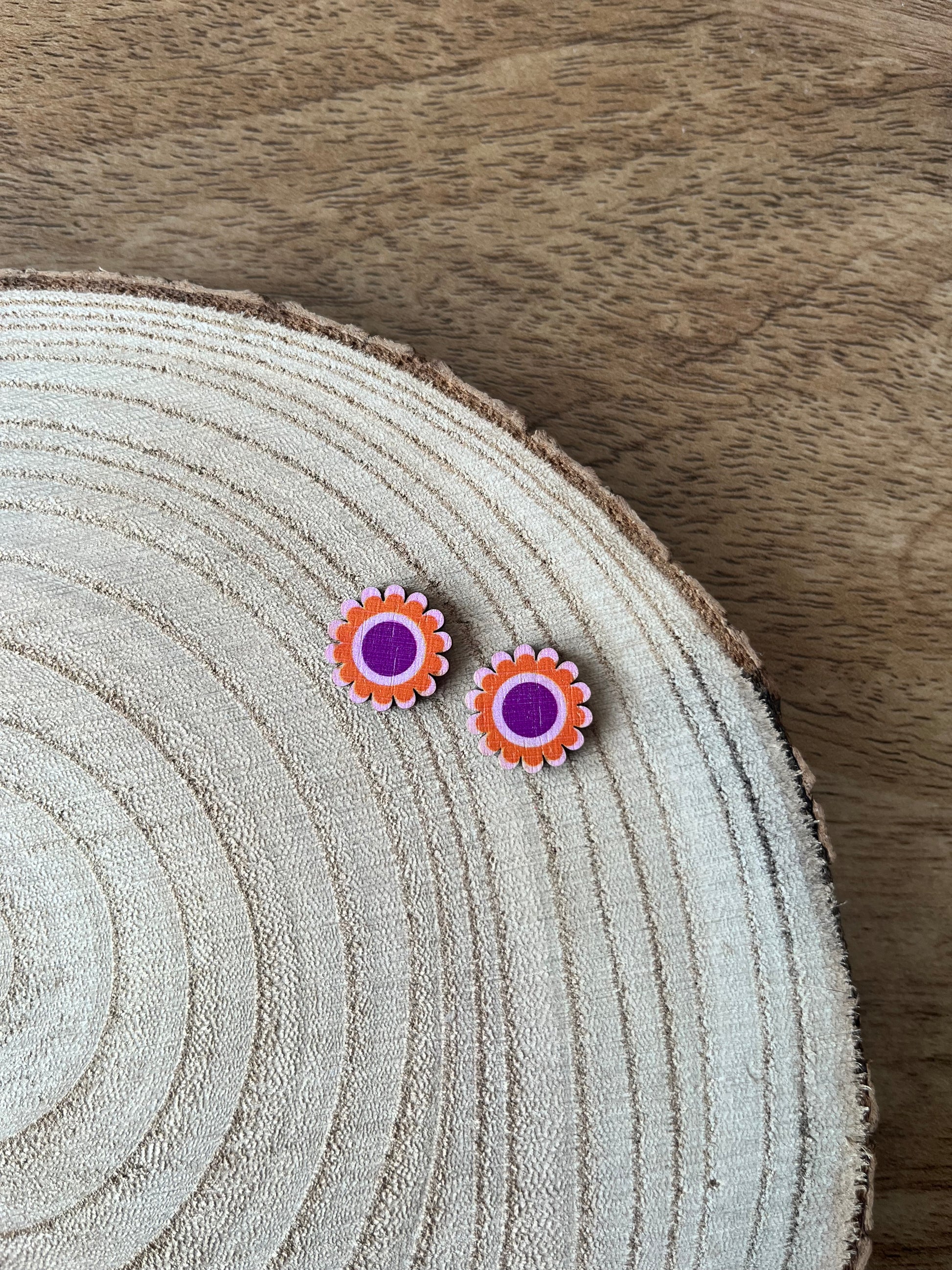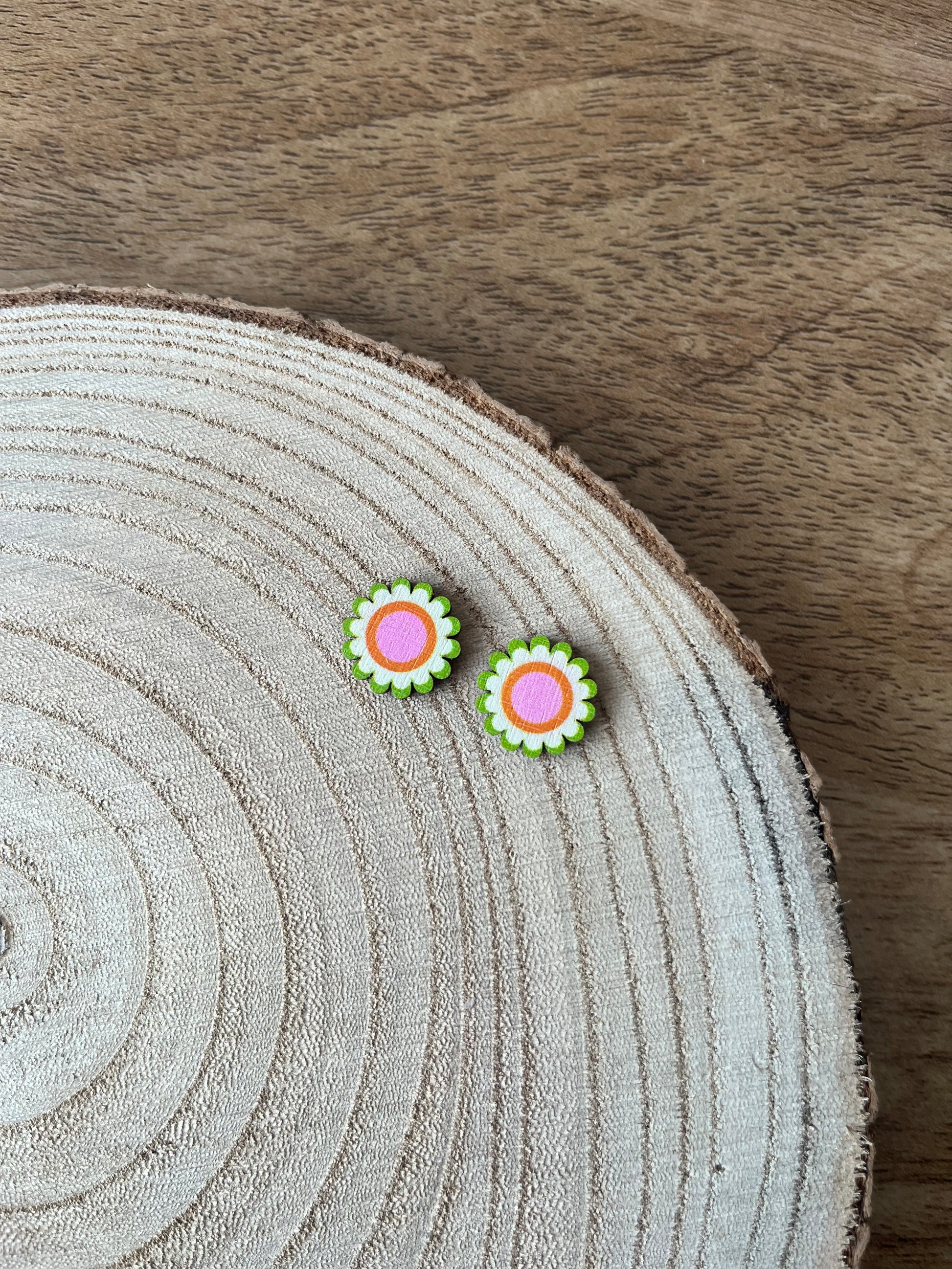Flowers in bloom. Dainty yet bold, these stud earrings are inspired by spring flowers and the flower power 60s movement đ¸