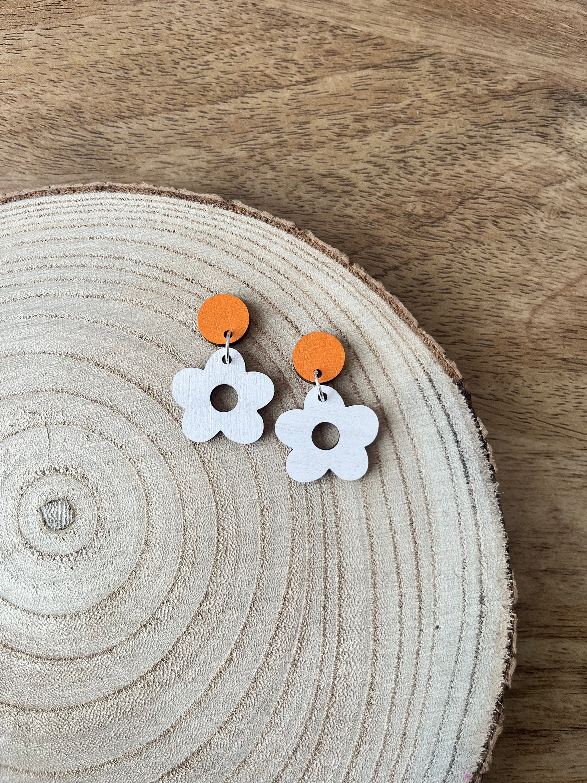 Daisy Days 60s ~ White & Orange Floral Dangle Earrings