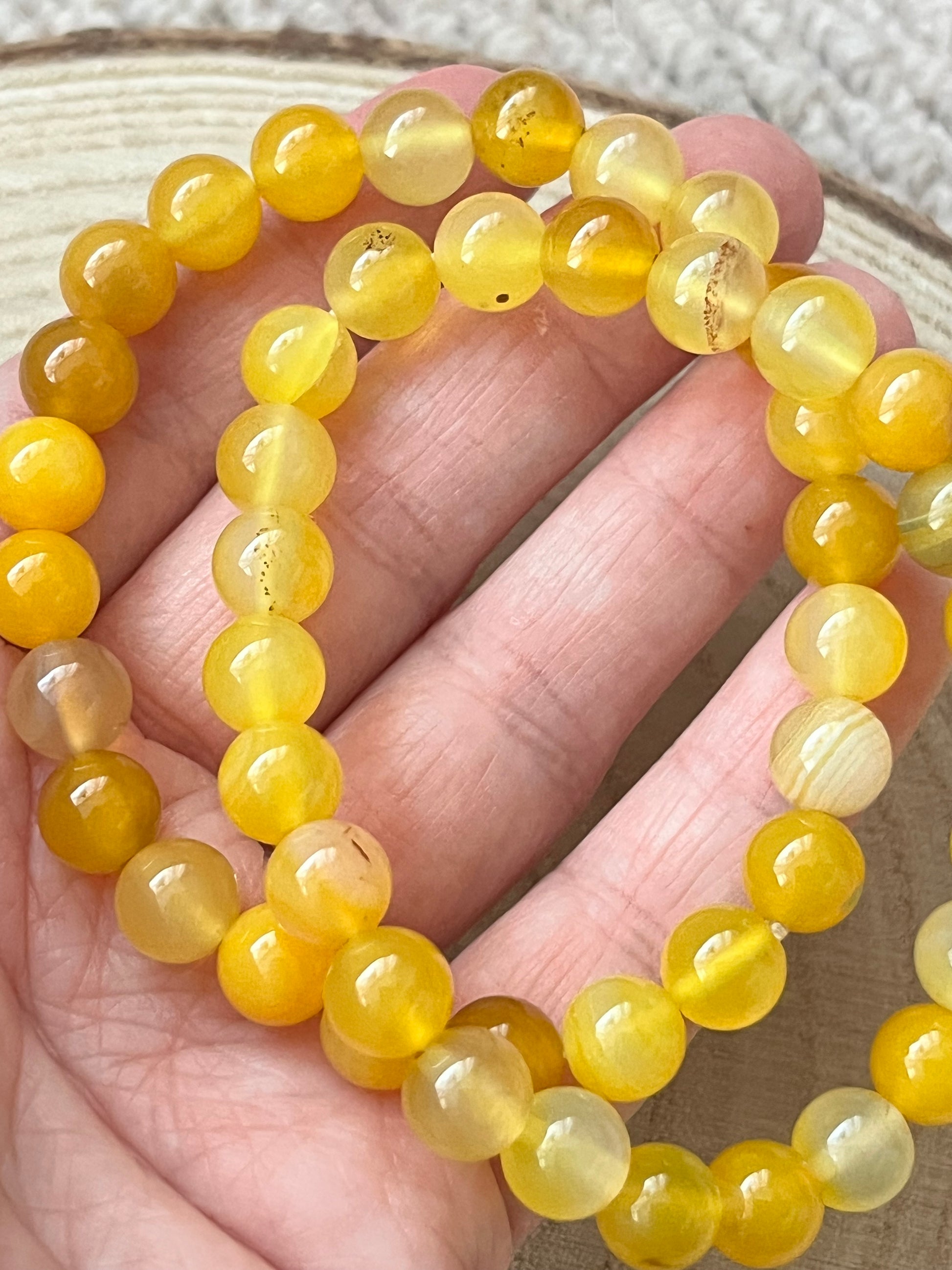 A warm, golden stone known for its grounding and empowering energy. It resonates with the Root, Solar Plexus, and Third Eye Chakras, creating a balance between personal will, creativity, and intuition.