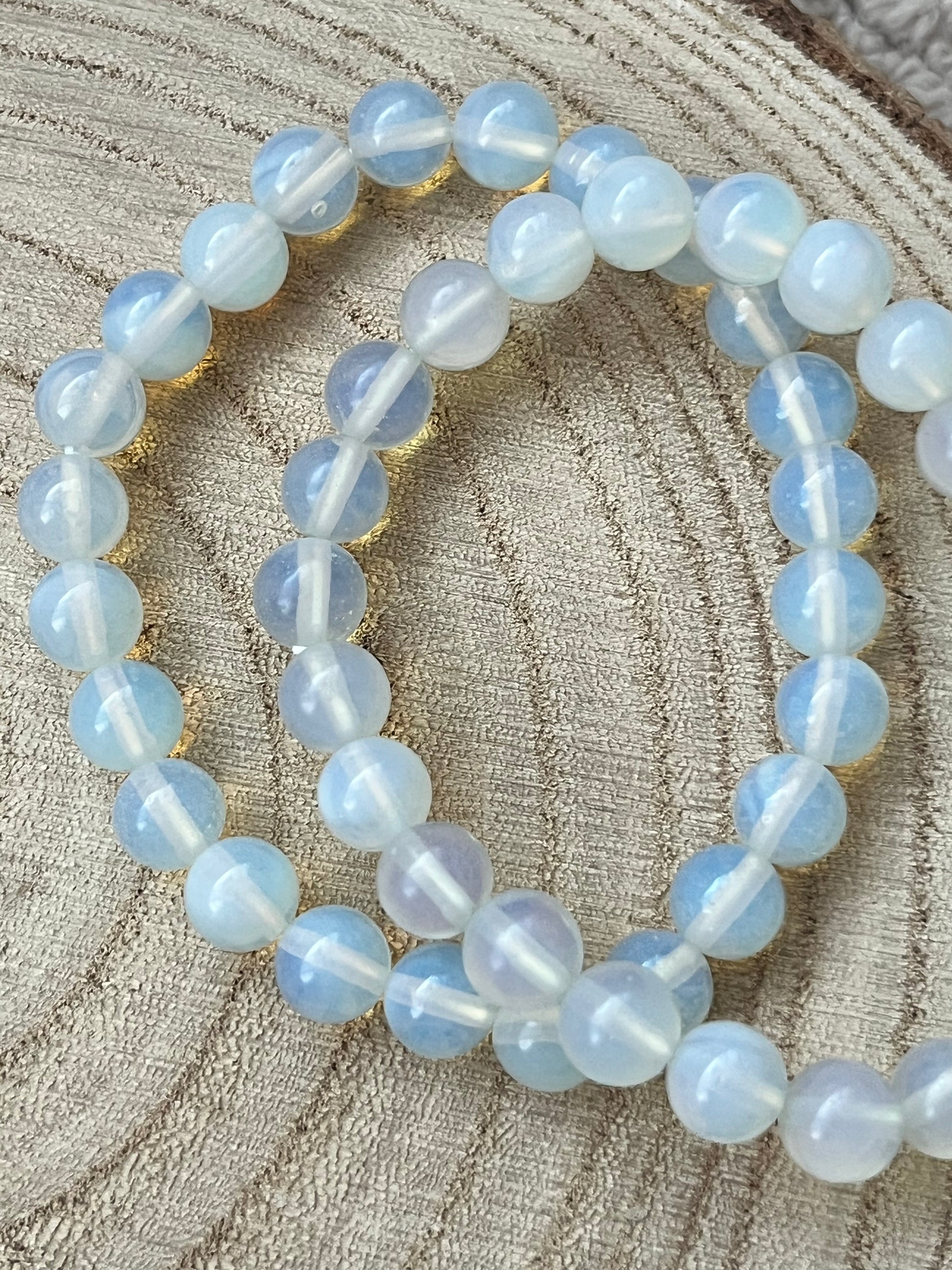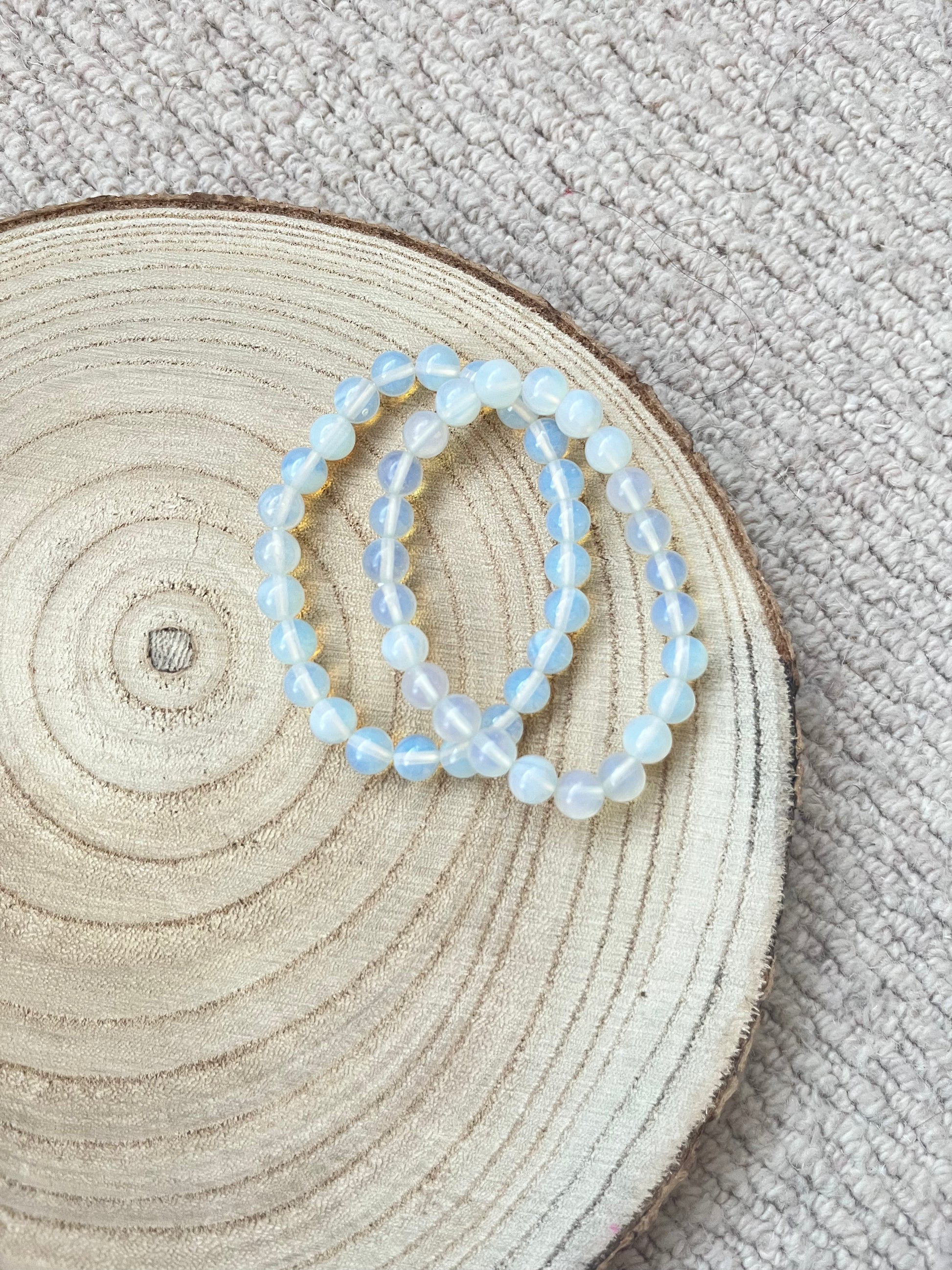 A bracelet of Opalite. Often associated with new beginnings, optimism, and emotional balance, helping to seek clarity and positivity.