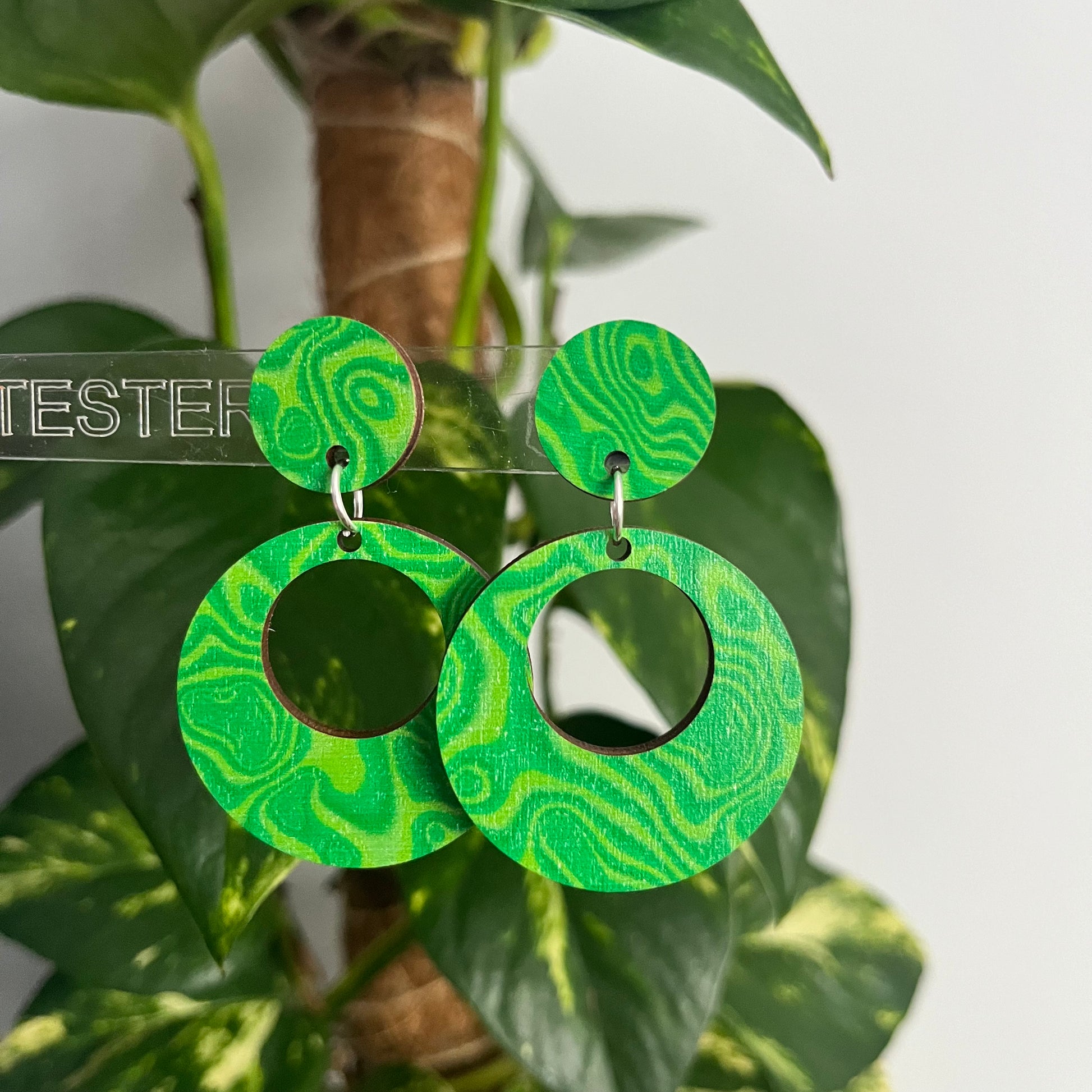 Strange Days are inspired by The Doors, psychedelic rock, lava lamps and nature! This was an early design that was created with polymer clay and has since been brought back as a staple and made using FSC certified wood rather than polymer clay.