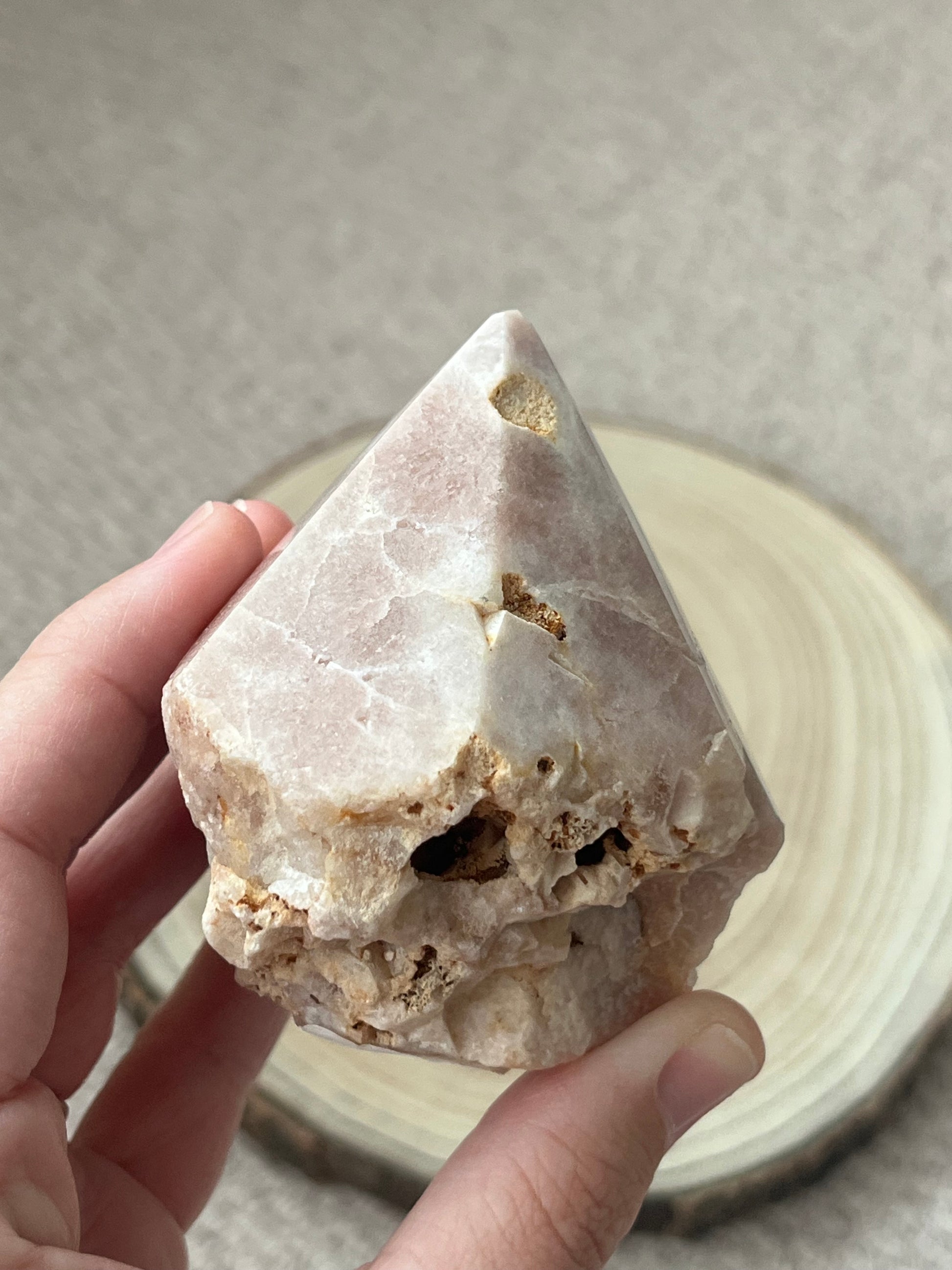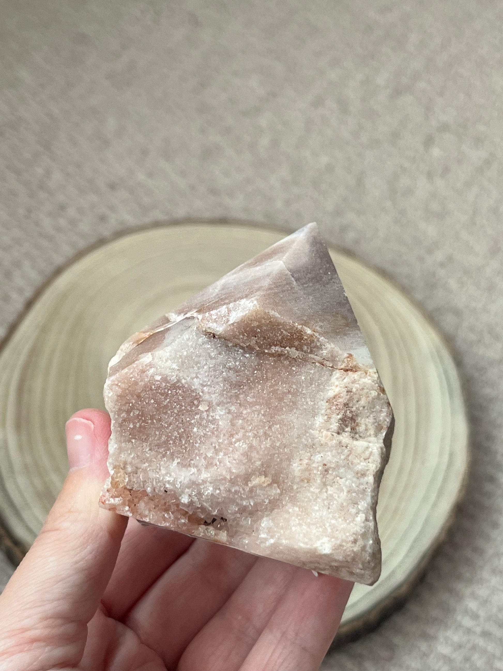 A top-polished point amplifies its energy, directing it upward for spiritual growth, emotional balance, and protection. Often associated with the heart and crown chakras, Pink Amethyst encourages self-love, intuition, and a deeper connection to nature.