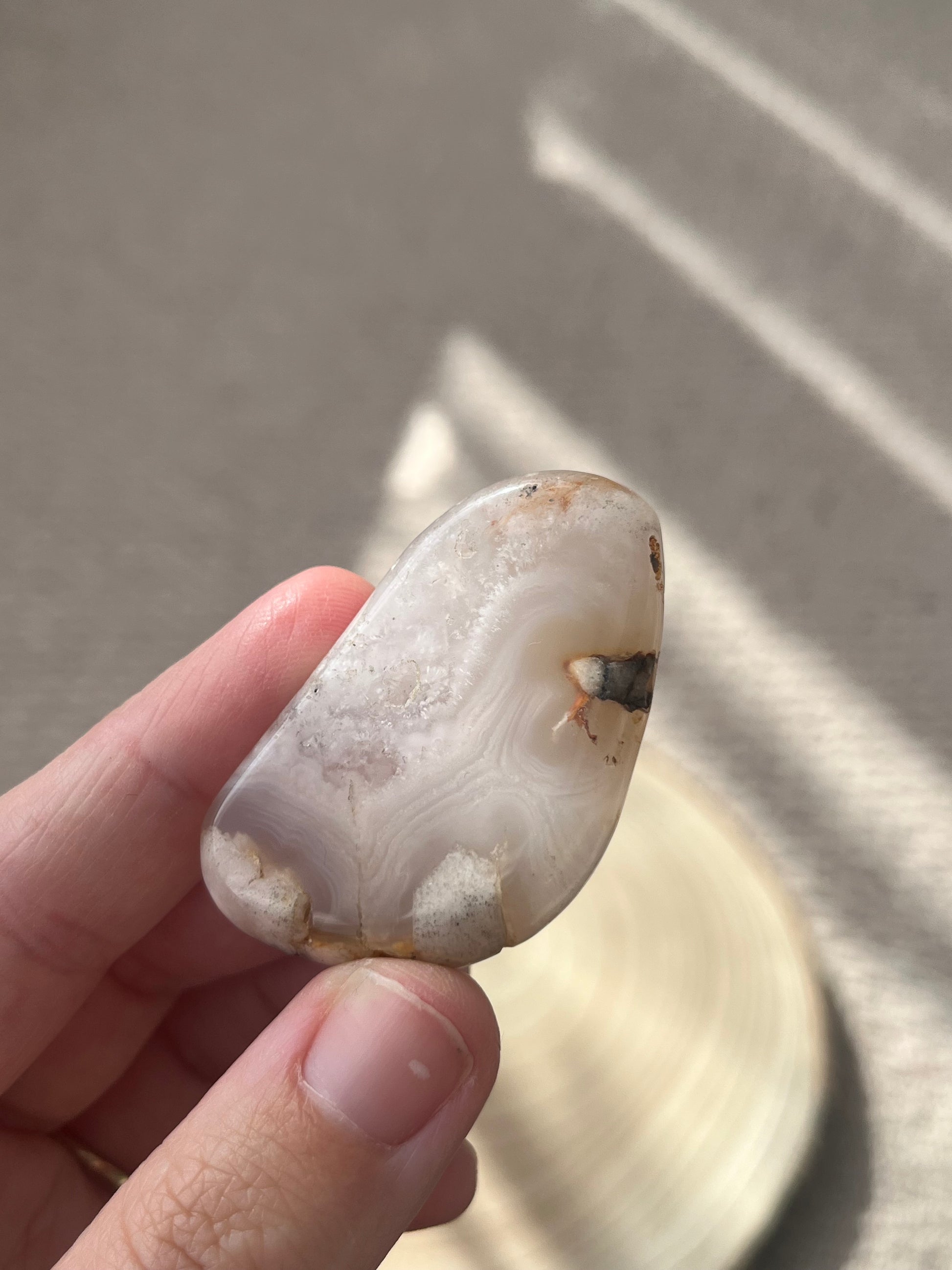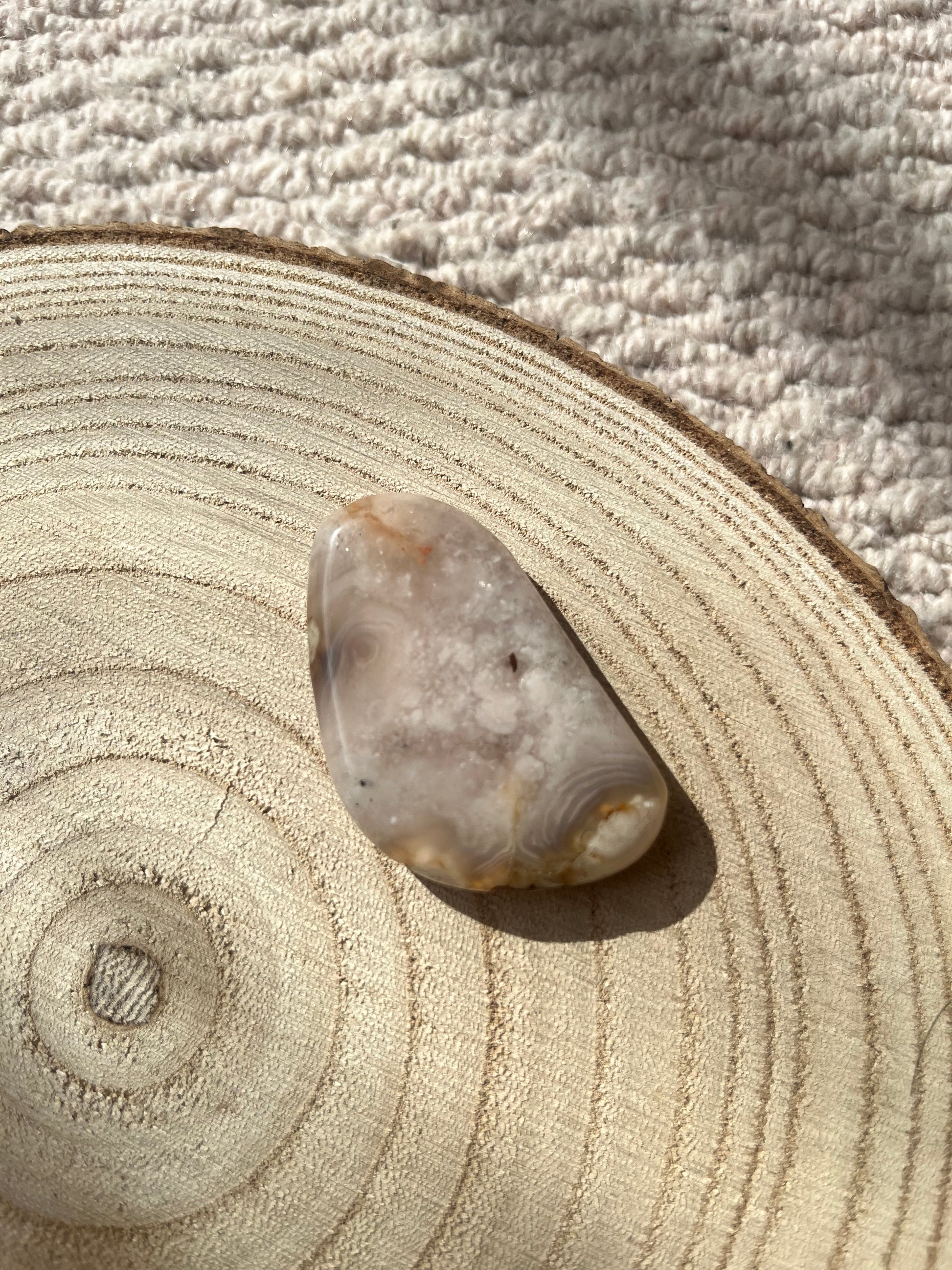 Flower Agate carries a gentle yet powerful energy, encouraging growth, transformation, and emotional healing. Its soft pink hues, intertwined with delicate white plumes, resemble blossoming flowers—symbolizing the journey from seed to full bloom. This crystal is deeply connected to the Heart and Root Chakras, helping to bridge the gap between emotions and reality, fostering self-discovery and inner strength. Known for its ability to reduce stress, inspire creativity, and promote joy